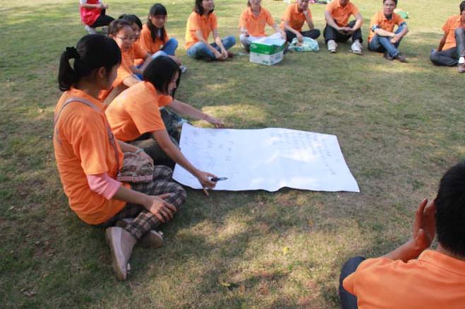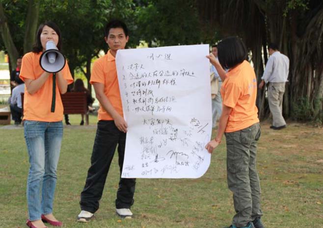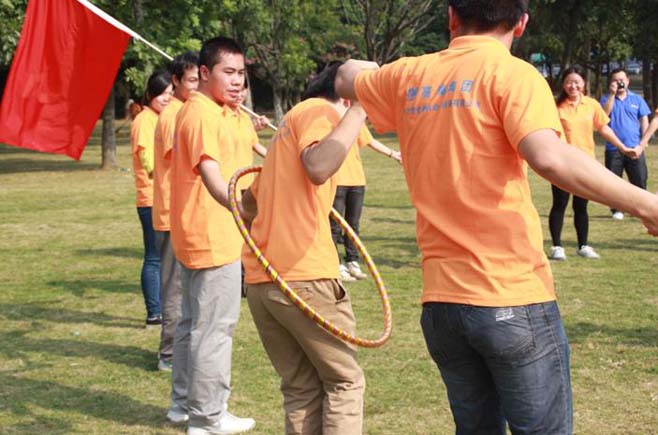 戶外拓展活動開始了!先是由我們總經(jīng)理致詞,講述活動的游戲規(guī)則,分成若干組進行比賽。我們的比賽項目有:“拔河比賽”、“同心協(xié)力”、“轉(zhuǎn)呼啦圈致力”、“盲人踢球”等等,活動勝出的組,還有豐富的獎金及禮品。