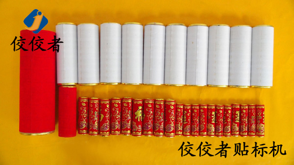 我們?nèi)粘I钪锌赡芤惨娺^一些小圓筒上面緊緊地包裹著一層標(biāo)簽,最常見的就是很多裝飾用的非常漂亮的紅色鞭炮筒,便是用熱熔膠紙筒貼標(biāo)機(jī)(又稱熱熔膠貼標(biāo)機(jī))貼上的標(biāo)簽,如下圖: