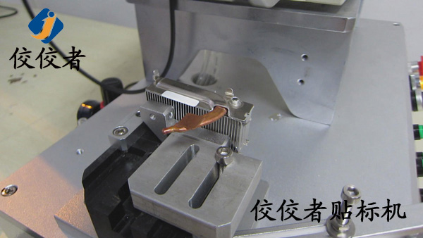 因?yàn)檫@款產(chǎn)品需要貼兩張標(biāo)簽。那么我們首先在散熱器上面貼上一張標(biāo)簽。當(dāng)我們貼好一張標(biāo)簽之后,再貼另外一張標(biāo)簽的時(shí)候,我們需要再一次調(diào)整模具的位置來實(shí)現(xiàn)另外一張標(biāo)簽的貼標(biāo)。所以我們建議客戶在同一個(gè)產(chǎn)品上面貼兩張標(biāo)簽的時(shí)候,盡力做到一張一張的批量貼標(biāo)。這樣可以有效增加生產(chǎn)率。