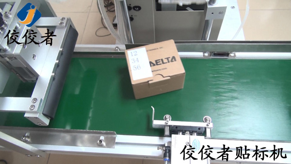 然后,標簽會被轉(zhuǎn)送到輸送帶的上方,等產(chǎn)品經(jīng)過時準確貼上標簽,如下圖: