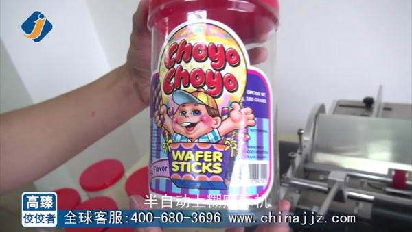 一到超市總是會到副食區(qū)去欣賞下那些糖果蜜餞的罐子上面貼的花花綠綠的標簽,那么這些漂亮的標簽是用什么貼上去的呢?下面就給大家介紹下這臺紅蓋圓罐貼標機(半自動上糊貼標機)。首先,我們來一起欣賞這臺紅蓋圓罐貼標機,如圖: