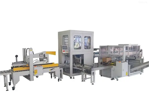 裝箱機是一種將無包裝的產(chǎn)品或者小包裝的產(chǎn)品半自動或者自動裝入運輸包裝的一種設(shè)備,其工作原理是將產(chǎn)品按一定排列方式和定量裝入箱中(瓦楞紙箱、塑料箱、托盤),并把箱的開口部分閉合或封牢。按照裝箱機的要求,它應(yīng)具有紙箱成形(或打開紙箱)、計量、裝箱的功能,有些還配有封口或者捆扎功能。