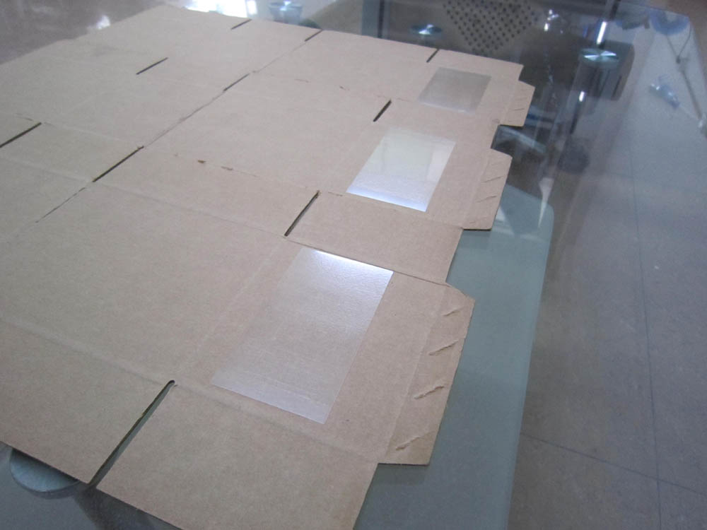上圖這個(gè)是三個(gè)貼好了的紙板,貼的是透明不干膠標(biāo)簽.