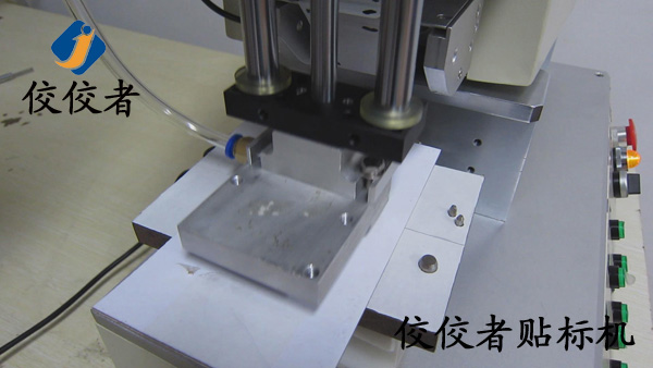 正常操作的時(shí)候工作人員將需要貼標(biāo)的手機(jī)殼放在方便拿取的位置以增加貼標(biāo)的效率,此時(shí)有一個(gè)步驟在圖片中沒有展示出來,那就是接通電源之后,需要做的就是將手機(jī)殼放在治具(固定產(chǎn)品用的模具,可根據(jù)產(chǎn)品的不同進(jìn)行定制)中.然后踩腳踏,此時(shí)貼標(biāo)過程已經(jīng)完成.看似只有一秒鐘的時(shí)間,在這個(gè)時(shí)間中,機(jī)器進(jìn)行了一系列的工作.吸標(biāo)頭向下垂直運(yùn)動到指定位置,標(biāo)簽剝離機(jī)構(gòu)同時(shí)出標(biāo),當(dāng)標(biāo)簽出到1/2處時(shí),吸氣裝置啟動,吸住標(biāo)簽,待標(biāo)簽完全剝離,標(biāo)簽也完全被吸在貼標(biāo)頭上了,此時(shí)貼標(biāo)頭向下貼標(biāo),到指定位置,這里說的就是產(chǎn)品放置的位置了.至此,貼標(biāo)過程就已經(jīng)完成了。(操作過程:放產(chǎn)品—>貼標(biāo)并覆標(biāo)(設(shè)備自動實(shí)現(xiàn))—>取出已貼標(biāo)產(chǎn)品。)如下圖:
